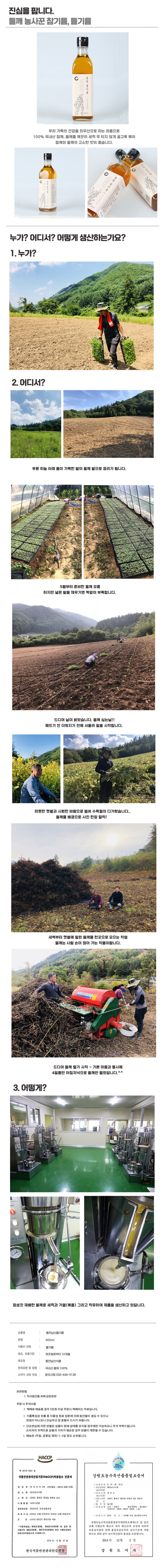 - 믿을 수 있는 국내산 100% 들깨를 이용한 건강에 좋은 생들기름